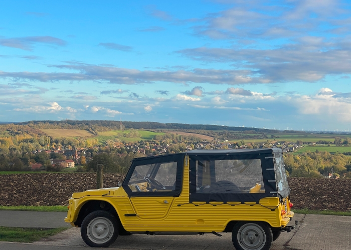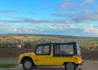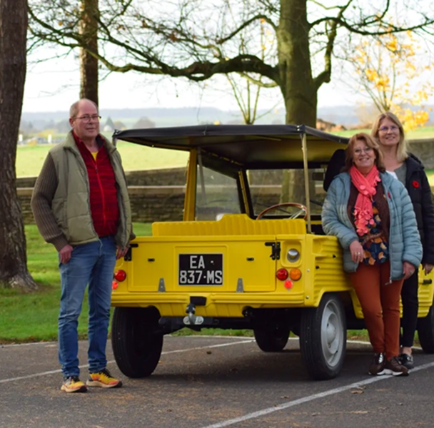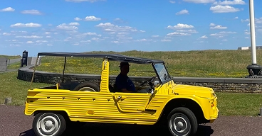 Disclaimer: Citronette is an open, jeep-type Méhari. Access to the vehicle requires stepping up to enter and stepping down to exit. Participants must be able to embark and disembark independently and without assistance. Passengers must be comfortable with exposure to outdoor conditions, including wind, sun, and light rain. We invite you to share any specific accessibility requests with us via our contact form, and we will make every effort to enhance your experience with Vimy House. Transfers to and from Arras train station available upon request.