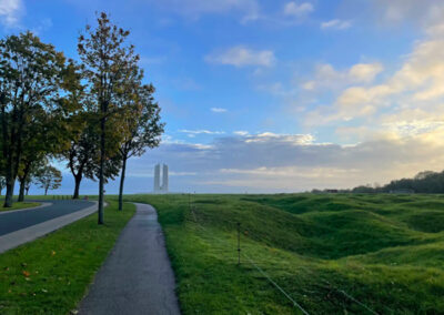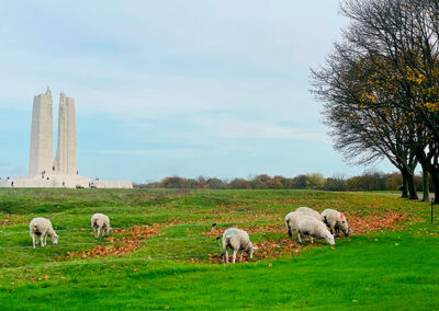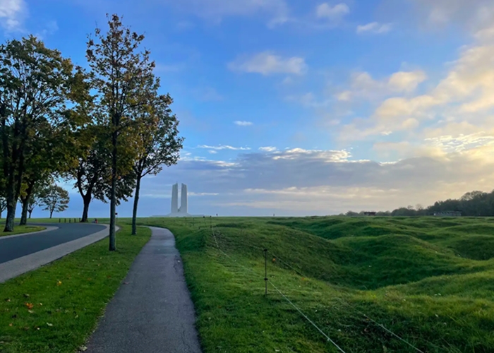Our guided walking experiences invite you to slow down and explore the ridge with intention — following paths that wind through preserved battlefields, quiet cemeteries, and the powerful presence of the Canadian National Vimy Memorial.